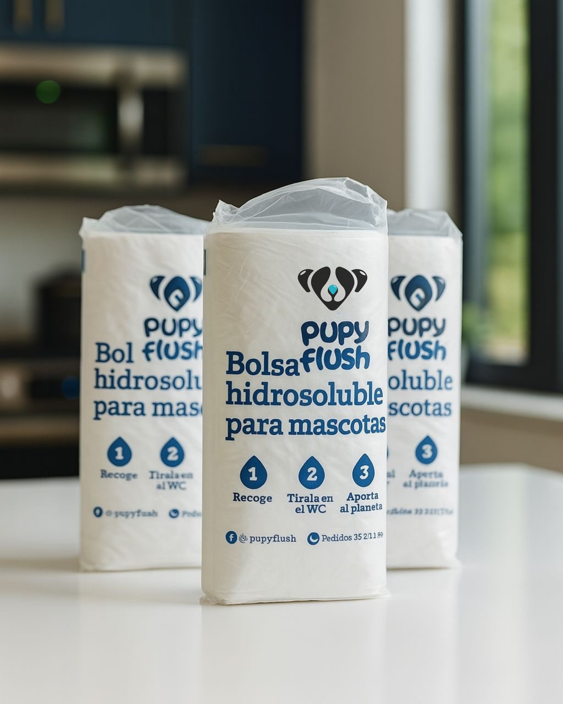 3 Paquetes con 100 bolsas hidrosolubles de PupyFlush cada uno.